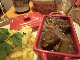 - Enlever le fiel, faire mariner la viande dans le vin pendant 24 heures au frais,