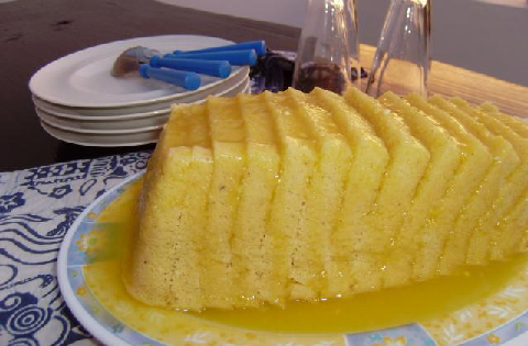 Ingrédients : - POUR LE GÂTEAU : 1 orange - 300 gr. de farine - 3 œufs - 1 sachet de levure chimique - 150 gr. de sucre - 100 gr. de beurre POUR LE NAPPAGE : 2 c. à café de fécule de maïs - 100 gr. de sucre - 2 oranges ( jus ).