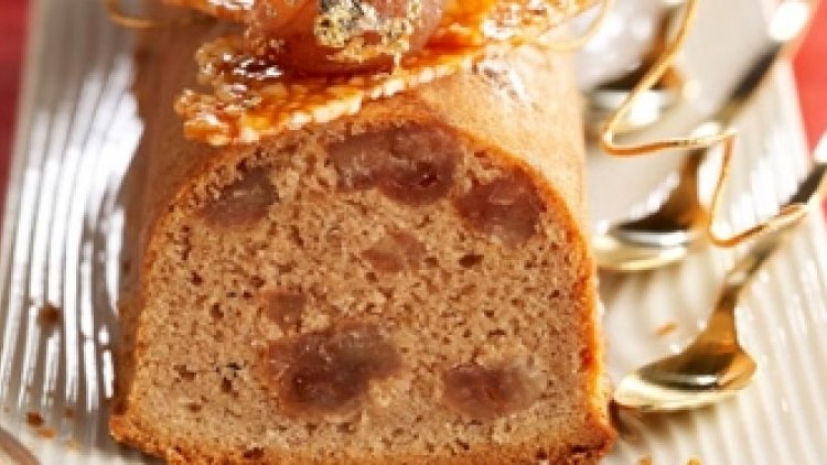 Ingrédients : 250 gr. de crème de marrons - 300 gr. de farine - 90 gr. de sucre glace - 1 sachet de levure chimique - 5 œufs - 260 gr. de beurre - 200 gr. de brisures de marrons glacé - 5 c. à soupe de Whisky. POUR LA NOUGATINE : 30 gr. de sucre en poudre - 60 gr. amandes effilées ou d'amandes hachées - 10 gr. de beurre