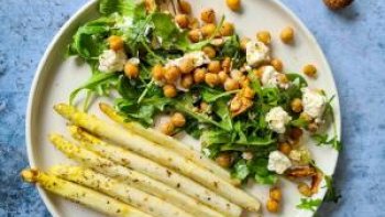 Asperges rôties et salade de roquette et pois chiches